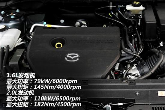 在动力方面,马自达星骋依旧采用与老款马自达3相同的1.6L和2.0L发动机,其中2.0L发动机最大功率110kW/6500rpm,最大扭矩182Nm/4500rpm,具备SVT可变气门正时控制系统、VIS可变进气歧管系统、TSCV可变涡流控制阀等发动机技术。