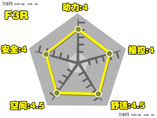我们喜欢:低廉的价格、较大的车身尺寸,使F3R拥有不错的性价比。源自上代花冠的外观设计,内饰也同样很相似,使用起来还是比较方便的。空间在同级车中占有优势。