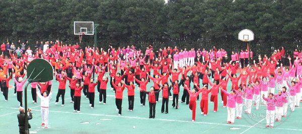 开幕式后,还举行了广播体操、柔力球自编套路“嵊州美”、经络健身操等集体表演。