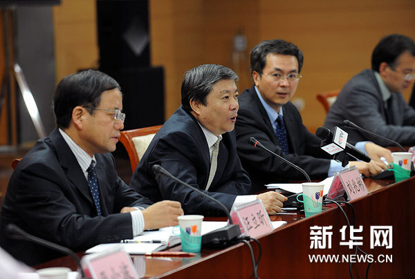 10月26日,国家质检总局法规司司长刘兆彬(左二)在听证会上介绍法规情况。当日,国家质检总局《家用汽车产品修理、更换、退货责任规定》立法听证会在北京国家质量监督检验检疫总局举行。规定旨在保障民生,保护消费者合法权益;创建公平竞争的市场环境,促进汽车产业健康发展。新华社记者 何俊昌 摄