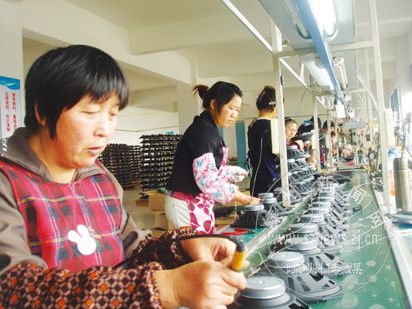“呱、呱、呱”,一声声清脆的喇叭声音从验声车间传出,据嵊州声威电子科技有限公司总经理李明介绍,自从2006年起,声威公司生产的扬声器全部为汽车生产商配套,昔日低端的扬声器已不见踪影,特别是公司获得了AQA国际质量认证后,产品更是供不应求。图为生产工人正在忙碌。