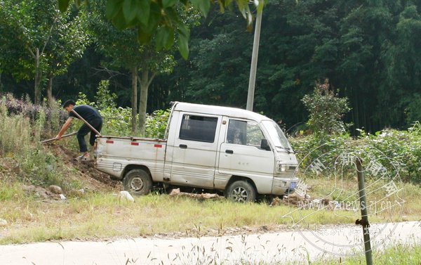 另外,网友还发现,有人居然还开着车在绿化带里挖沙!