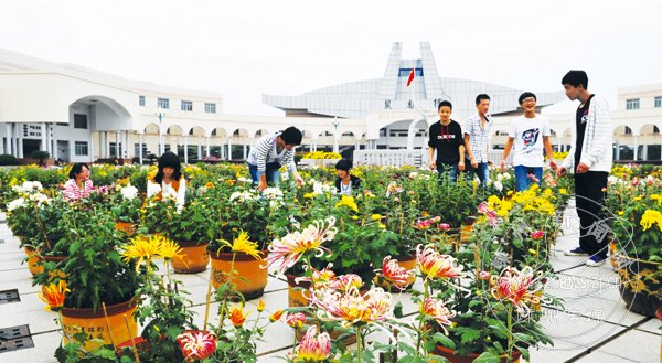 按理说,秋天是天气渐凉,秋高气爽,然而本周的天气让人摸不到头脑,打雷下雨,还十分暖和。不过,秋天毕竟是秋天,菊花开得正艳。图为昨日,嵊州一中的花工把自己培育的500余盆菊花在校内的广场上展出,千蕊绽放,亦显浓浓秋意。