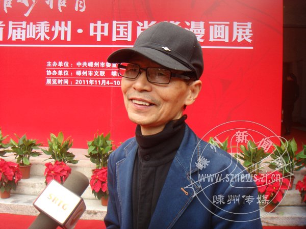 看着一幅幅肖像漫画作品,蒋老师不断地点头:“题材真是广泛,既有明星、名人,又有政治人物,极度的夸张和变形,确实惟妙惟肖啊!”他说,嵊州确实是一个人杰地灵、文化底蕴非常深厚的城市,特别是嵊州的市委、市政府能搭台举办这样一次全国性的肖像漫画展,并得到了这么多人的喜爱,令他十分感动,他希望肖像漫画能“嫁”在嵊州,并在嵊州结出果实来。蒋文兵老师说,为了表达对嵊州举办“首届嵊州·中国肖像漫画大展”的敬意,他特地选送了自己的代表作之一《蒋兆和》的水墨肖像,陈列在嵊州艺术村参展。