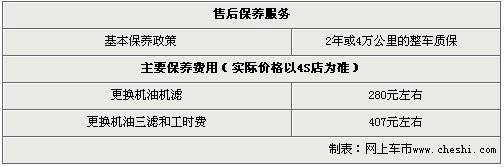 致胜车型享受2年4万公里的质保,建议日常保养周期以5000公里为宜,在质保期内,店内提供四次免费机油、机滤的更换,首次保养需在5000公里左右进行。根据4S店的销售人员介绍,致胜每次小保养(更换机油、机滤)的费用约为280元左右,而进行一次大保养(更换三滤、机油)的费用约为407元左右。