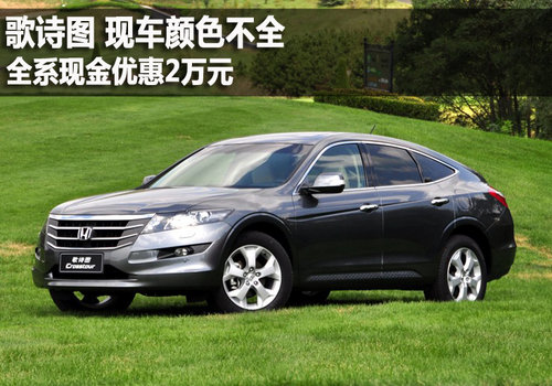 广汽本田歌诗图是一款基于雅阁的平台设计开发的跨界车型,在动力方面采用了雅阁高配车型的3.5L引擎,而在外观设计上,歌诗图最大的亮点是与宝马X6很相似的尾部设计,收紧下滑的造型充分融入了跨界车的风格。近日,编辑从广汽本田北京经销商处了解到,歌诗图现车供应,购车可优惠2万元。
