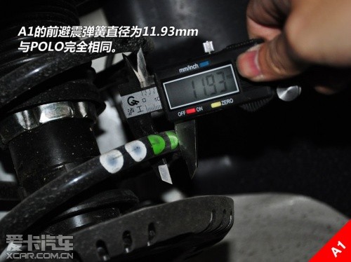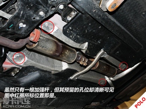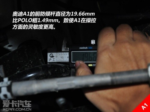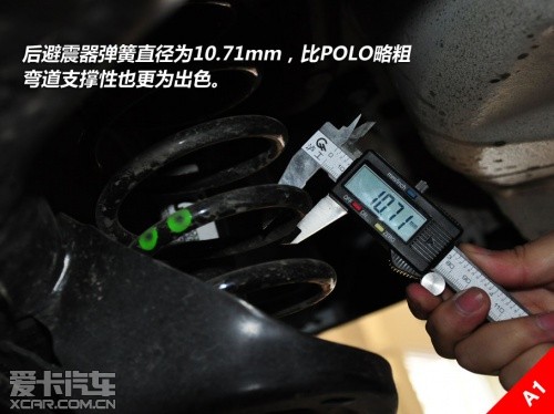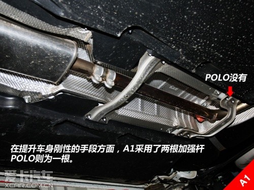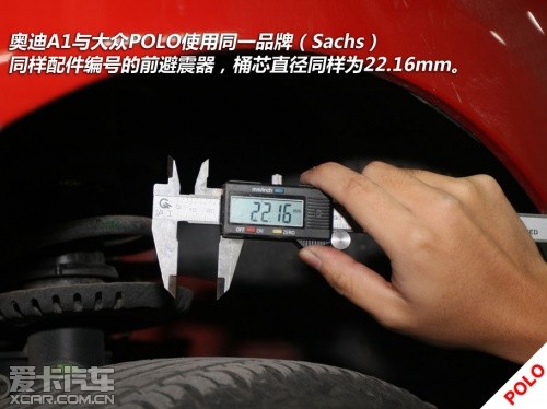 另外,在制动系统方面,奥迪A1的刹车为四轮碟刹,且前刹车盘直径为288mm;反之,在POLO上采用的前盘后鼓的刹车机构,且前盘刹车盘直径为254mm。而在POLO的后悬鼓刹的后方,我们同样找到了用以安装盘式刹车的预留位及螺栓孔,由此可见平台更像是一个母板,而且拓展能力是很宽泛的。