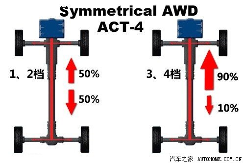 四驱系统方面,斯巴鲁森林人根据发动机与变速箱的不同,也有三种不同的搭配方式,其中目前国内最主销的2.0、2.5L排量自然吸气发动机+4AT的组合上采用的是斯巴鲁所说的主动扭矩分配式四驱系统(人们称之为ACT-4)实为中央多片离合器式适时四驱。