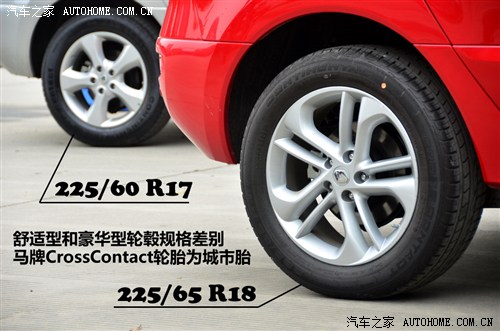 在关于鞋的问题上,两款车型都配备了17英寸铝合金轮毂,无独有偶的是两者的款式都不怎么时尚。2012款科雷傲取消了老款BOSE限量版那副哑光黑色的轮毂,转而采用了现如今较为中庸的五幅款式,225/60 R17马牌CrossContact系列轮胎也还是典型的城市配备。森林人的轮毂实在谈不上好看,设计着实平庸不谈也罢,搭配的轮胎自然还是日本的产品,225/55 R17优科豪马GEDLANDAR系列产品,规格上比科雷傲的要更运动些,挺符合品牌的定位。