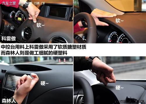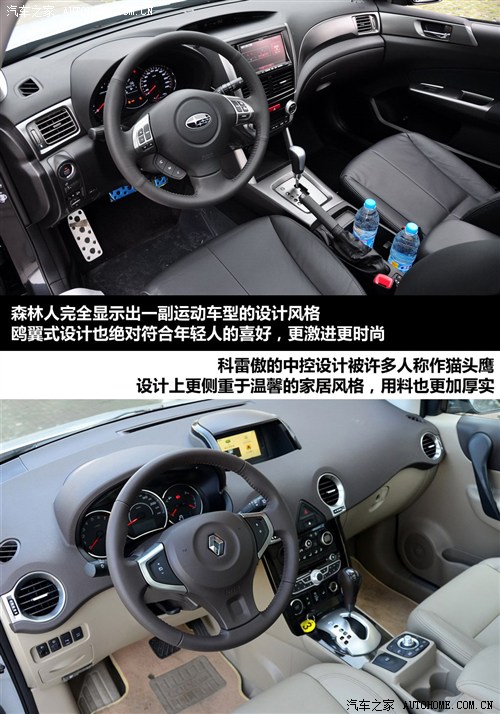 仪表盘的设计上森林人显然要漂亮很多,方向盘的手感同样如此,总体来说要比科雷傲精致不少。主动安全性方面,我们选择的两款车型均为高配车型,所以六安全气囊的标准完全在情理之中。