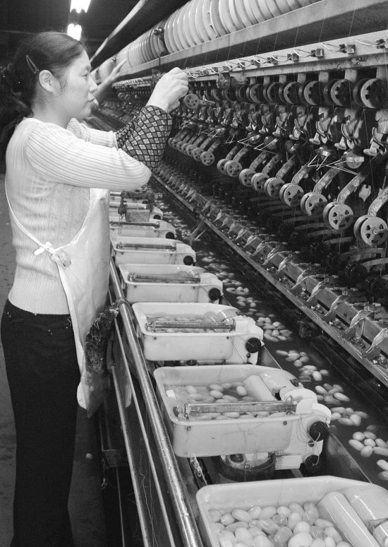 嵊州市领带服装、机械电机和电器厨具三大主导产业平稳发展,今年1至9月份,实现规上产值216.61亿元,同比增长23.3%,引领了该市产业的发展。图为该市一缫丝企业生产车间内,工人正在劳动。【来源:天天商报】