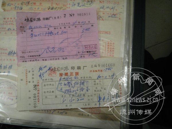 翻看徐玉良的票证,有两张发票引起了记者的关注,因为这两张票证的抬头写的是嵊县日报印刷厂。