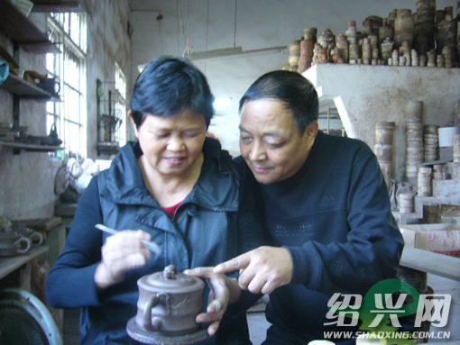 据了解,钱小英、金祖稠夫妇俩原来都是当地紫砂厂的技术工人,如今两人都是浙江省首批优秀民间文艺人才。其中金祖稠还是浙江省非物质文化遗产紫砂代表性传承人,目前钱小英也正在积极申报中。