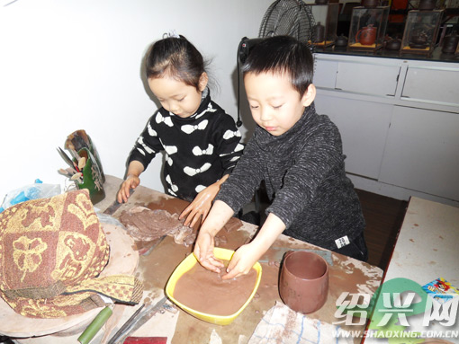 据钱小英告知,这两个孩子是她的一对龙凤胎孙子和孙女,一个叫“宝宝”,一个叫“贝贝”,今年5岁。在孩子们眼里,眼前的这位长辈既是慈祥的奶奶,更是严肃的老师。看着孩子们专心致志的样子,钱小英乐开了怀。为能从小培养并激发他们的兴趣爱好,钱小英想让他们用童心发挥想象力,自己动手制作各种紫陶泥工艺品,让紫砂艺术后继有人代代相传。