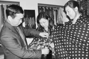 嵊州市目前有领带、头(围)巾等服饰生产企业1000多家,从业人员5万余人。随着领带业逐步走向成熟,很多领带企业的头(围)巾产值比重也逐年上升。图为昨日嵊州市领带精品展销中心内,消费者正在选购头(围)巾。【来源:天天商报】