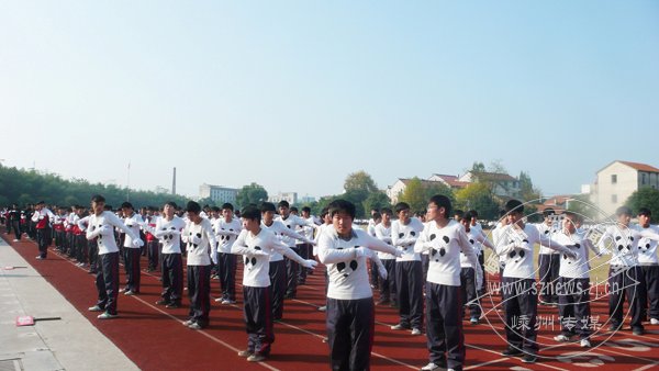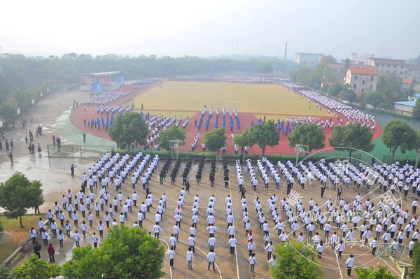 广播操期间,60个班级的3400多名学生喊着各自的口号,井然有序地从教室里小跑出来。这些穿着班服校服的学生,他们的步伐整齐划一,他们的口号铿锵有力,充满了青春的朝气活力。