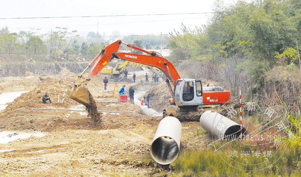 12月5日,市水务集团南山水库输水复线工程正在抓紧施工。