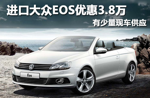 据进口大众经销商销售人员介绍;目前新款EOS少量现车,到店的现车以黑顶车型为主,价格方面有3.8万元的优惠,有少量现车供应,优惠幅度较之前老款基本持平,有喜欢该车的消费者可以联系经销商进一步了解详情。