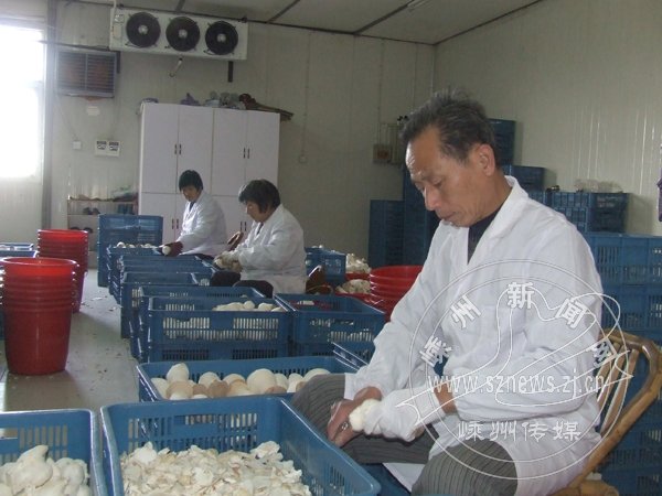 寒冬时节,瑞丰农业发展有限公司的工人正在处理杏鲍菇。杏鲍菇是一种食用菌,一般情况下一年只有4个月的种植时间,但在瑞丰公司却实现了常年工厂化生产,主要就是靠温、光、水、汽来调节温度,使冷库始终保持在恒温15℃。