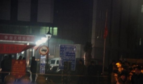 子夜时分,一辆载有三名受伤学生的救护车赶到丰县人民医院。 朱志庚 摄