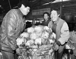 这几天气温下降,负责嵊州市区和城乡30余万居民生活的该市浙东农副产品批发市场,蔬菜品种多,货源充足,批发价稳定,没有出现提价涨价等现象。图为昨日蔬菜批发交易现场。【来源:天天商报】