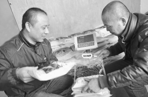 嵊州市长乐镇农儿水产专业合作社试点的100亩水稻和泥鳅混养基地,每亩可收获400公斤左右的稻谷,还可收获泥鳅60公斤,相当于光种水稻三倍的收益。而且这种混养方式种出来的大米,市场销售价格是普通大米两倍以上。图为长乐镇稻鱼混养示范户正在包装今年生产的首批稻鱼混养大米。 【来源:天天商报】