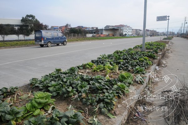 日前,网友路过嵊张公路黄泽段,看到马路边将机动车道和非机动车道隔开的绿化带里种了不少蔬菜,还有一些绿化植物已经枯死。“菜园子”一路延伸至少有几十米。
