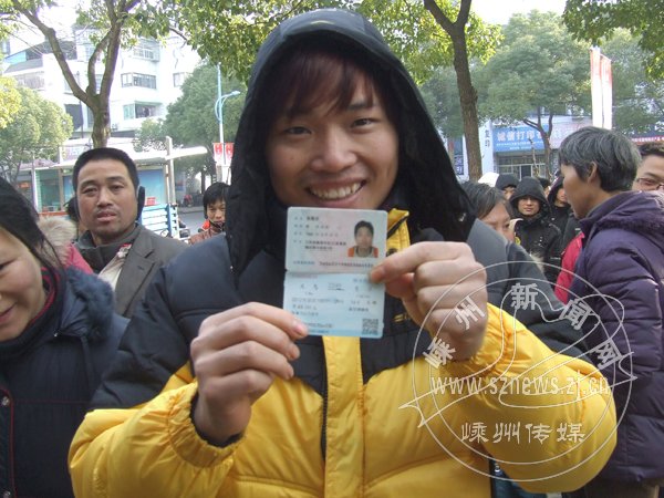 一位在嵊打工的裘姓小伙子买到了一张义乌到鹰潭的火车票,高兴地向记者展示,引来旁人羡慕的眼光。