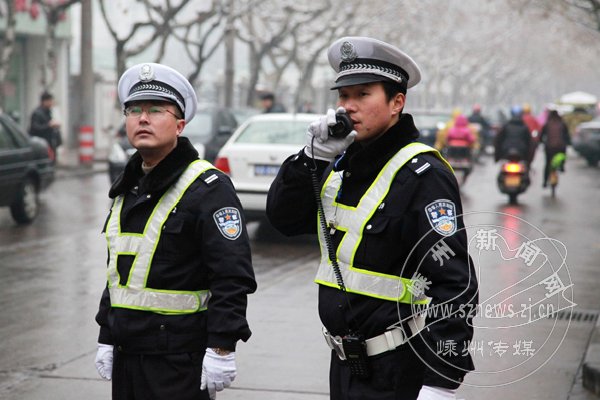 昨日上午,市第十三次党代会在嵊州剧院隆重开幕,400多名党代表和列席代表纷纷从各地赶来,北直街比往日拥挤了很多。为让代表们和广大市民安全有序通行,市公安局的民警一大早顶寒风、冒雨雪在街头值勤,守护行人的安全。