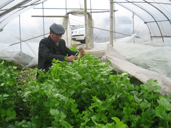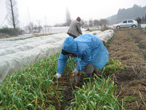 “一年中我们只休息一天。”崇仁镇三村蔬菜生产经济合作社社长裘云炎笑着告诉我,“那就是正月初一,今天已初二了,上午6点多钟,贩销户就打电话给我,叫我拔一些芹菜、大蒜和波菜,这不,今天一大早就到田里劳动了,下午4点,贩销户要准时来拉菜的。”