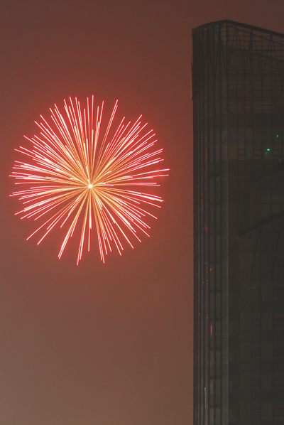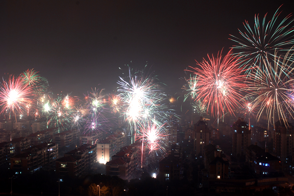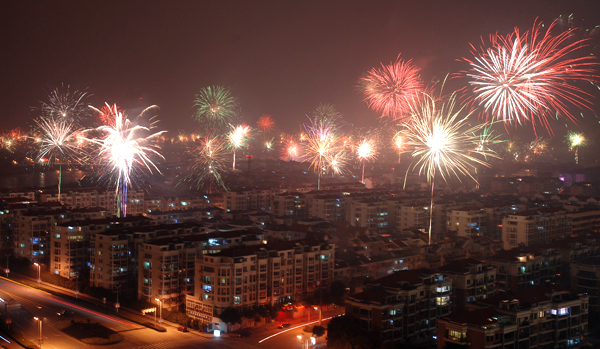 春节期间,经常有美丽的焰火绽放在剡城上空。市民用放烟花这种方式,庆祝传统佳节,表达新年新愿望。