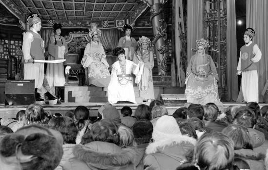 1月25日,嵊州市飞翔越剧团正在该市浦口街道演出越剧《孟丽君》。嵊州市春节期间约有100多个越剧团在全国各地演出,为国内1亿多戏迷送上精彩的戏剧节目,丰富了群众的文化生活。【来源:天天商报】