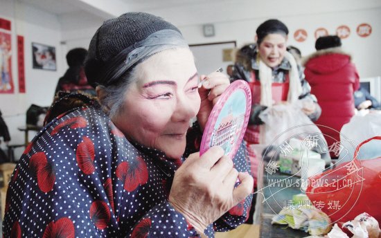 没有报酬,没有回报,甚至只能挤在狭小的后台吃饭,但参加演出的戏迷们没有一句怨言。74岁的边玲娥刚唱好《九斤姑娘》选段和独角戏《搓麻将》两个节目,就开始准备晚上的表演节目《观灯》。“和大家在一起表演非常高兴,能到上店村来表演就开心了。”边老太说,1998年的时候,在她的发动和鼓舞下,嵊州的越剧爱好者走上了广场,组建了戏迷角,如今她又在发动更多的越剧爱好者走进山区、走进农村,为更多的老百姓表演。