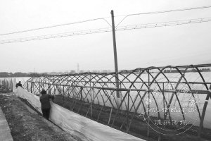 近日来,浦口街道蒋林头村湛头自然村村民忙着搭建大棚培育辣椒,已搭好大棚近120只。该村葛大伯告诉笔者,他家的四只大棚本该在春节期间搭好,因天雨没有全部搭好,夫妻俩只有冒着严寒轮搭大棚。据了解,他家四只大棚的辣椒,成熟后销往杭州,可赚2万多元。