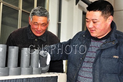 2月15日,浙江嵊州市西格玛科技有限公司科研人员正在展示公司的石墨发热体新产品。据悉,该公司近日与美国尤卡总代理成功签订石墨发热体的订单,迎来2012年的“开门红”。西格玛科技有限公司致力于专业碳——石墨发热体的研制已有十几年的生产历史,产品广泛应用于国内外各类真空炉具,远销挪威、美国及日本,该公司研发的同质量的固化石墨碳砖堪比黄金价格。