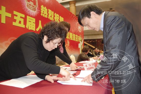 在嵊州宾馆一楼大厅的报到现场,登记、发证、领资料……工作人员有条不紊地忙碌着。代表们讨论最多的,就是如何在这次会议中将事关我市经济社会发展的重点和难点问题体现在各自的议案和建议里。“这次大会是我们嵊州人民政治生活中的一件大事,我感到既光荣又责任重大,因为我们肩负着老百姓的心声。”市人大代表裘移风说。