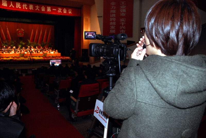 在“两会”直播现场,嵊州新闻网直播团队人员组织严密,分工明确,配合密切。会场外,在本网直播广告背景前,四位工作人员紧张地进行图文及微博直播工作;会场内,三位摄像师熟练地选取着镜头,两位导播流利地切换着机位,四台55寸液晶电视实时播放着直播画面。良好的直播效果得到了与会代表和广大网友一致好评。据不完全统计,“两会”开幕式期间,来自全世界各地观看直播的网友多达2万多人次。