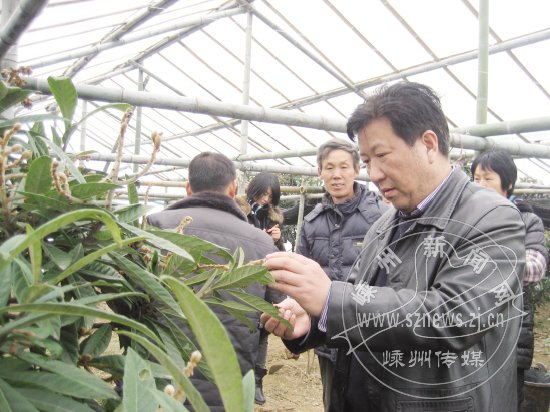 水果大师吕录营正在察看大棚枇杷结果情况