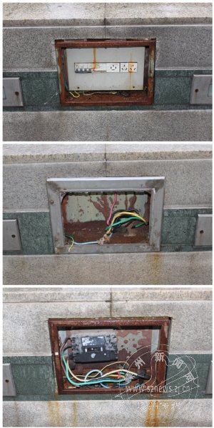 文化广场是市民日常休闲的大型公共场所,近日,笔者发现广场上有不少电力表箱的盖板损坏遗失,导致插座、电线暴露在外,而且这些表箱锈迹斑斑,离地均不到一米,小朋友能随手触及,非常不安全。