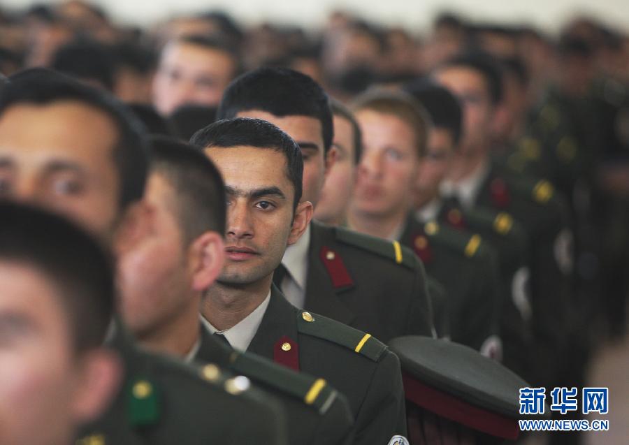 3月22日,在阿富汗首都喀布尔的国家军事学院,新毕业的军官们参加毕业典礼。按计划,美军和北约部队将在2014年底前撤离并将防务移交给阿富汗方面。 新华社发(马苏德摄)