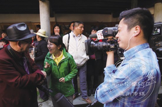 图为拍摄组正在采访汪爱源。