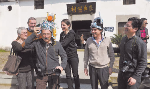 昨晚,“相约越乡”全国越剧票友流派擂台赛总决赛在嵊州举行,越剧之乡迎来了各地的越剧迷。前天,在中国女子越剧的发源地——嵊州市甘霖镇施家岙村,很多越剧迷们登上古戏台一展身手,Ciaogroup等5位意大利古建筑设计专家对越剧格外着迷,除了认真看选手的演出外,还对戏具和“绳武堂”“八卦台门”等与早期越剧有关的古建筑进行了探研。Ciaogroup说,他迷上了这里的建筑和古朴的越剧。