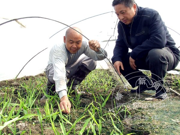 别人的生姜还在地里打盹,他的生姜苗已昂首挺立,“科技惠农,咱们农民兄弟才能培育出这嵊州生姜第一苗,预计5月份我们的嫰姜即可上市。”正在大棚里忙碌的邢秋林高兴地说,3层大棚,外加一层地膜,科学控制好温度和水分,生姜就出苗了。