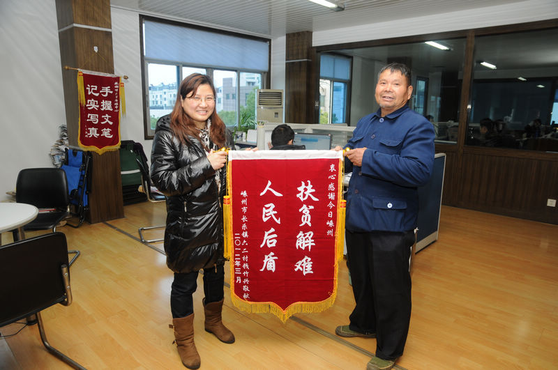 2月29日,本报记者袁维霞报道了长乐镇六村72岁村民钱竹兴老人欲把百余株香樟树卖掉还债的新闻,并联系花木大师施玲玲在圈内发布信息。一位来自绍兴、姓章的好心人看到新闻后,与钱竹兴老人取得联系,买走了这批香樟树。3月23日上午,钱竹兴老人拿着锦旗,冒着大雨赶到本中心,向新闻媒体和记者帮助及购买香樟的好心人表示感谢。