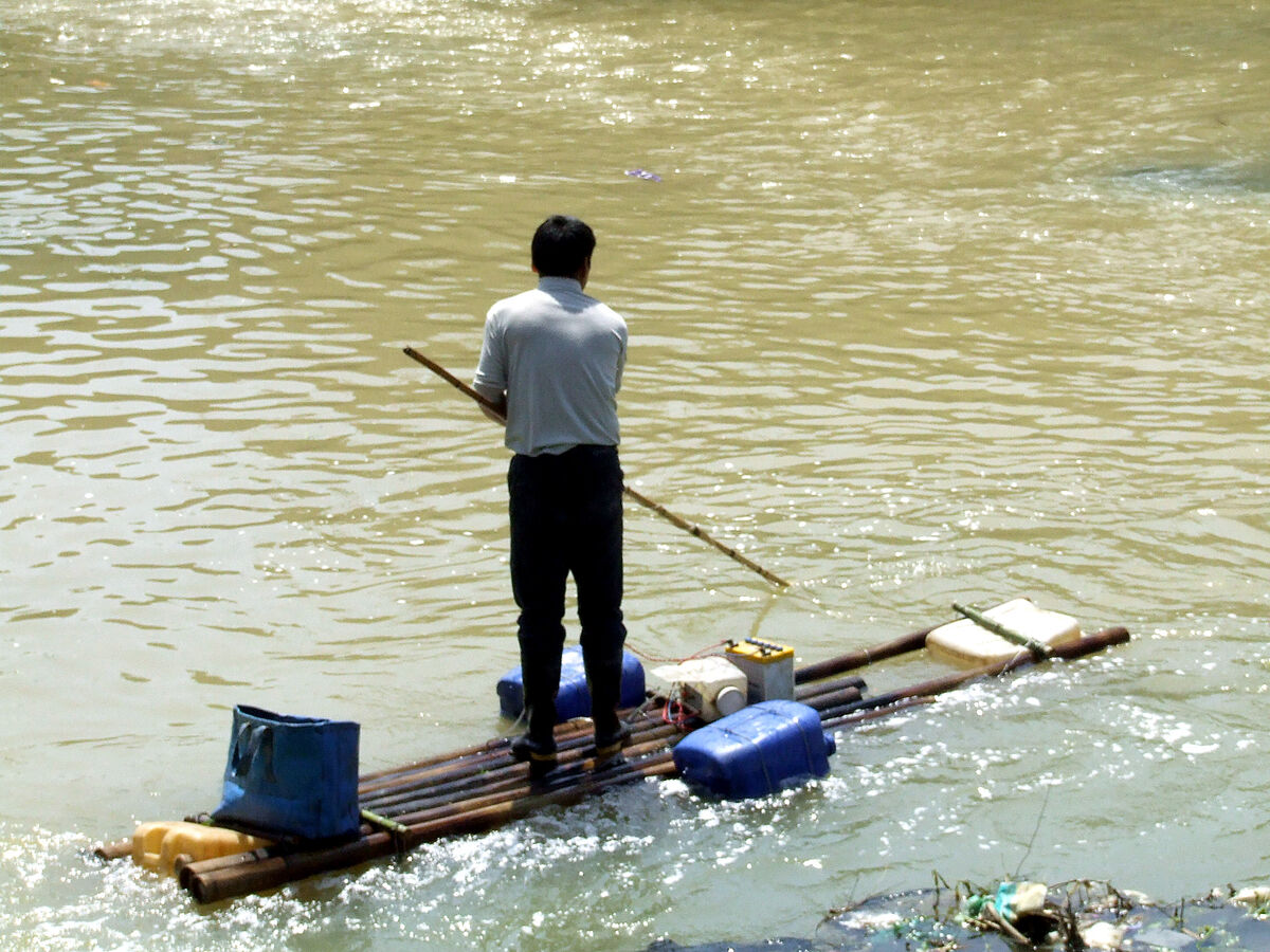 近日,在我市各乡村常可看到一些人在河内电鱼。据了解,一些地下工厂用蓄电池和高压线圈组装生产的电鱼器在我市农村热销,部分在家闲置的农村劳动力利用这种电鱼器在小河、山沟里电鱼。 据业内人士介绍,这种捕鱼方式不但使河里的鱼虾遭到毁灭性破坏,有时捕鱼者操作不当,还易造成“自杀”。图为一农民在黄泽镇境内的小河里电鱼。