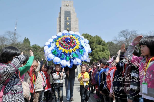 为开展革命传统教育,近日,浦口小学200多位学生,在鹿山公园革命烈士纪念碑前列队敬礼,向长眠在此的烈士敬献花圈。