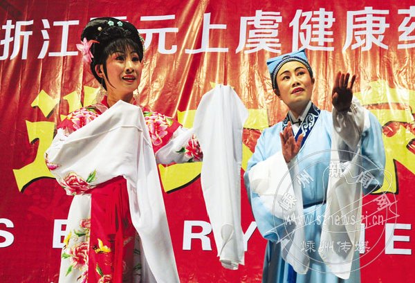 4月7日晚,来自上虞市戏迷学会的10多位越剧票友风尘仆仆齐聚三界镇,首次以团体形式在三界镇沈家湾村的越剧舞台友情演出,给曹娥江畔上千位群众送上了精彩的越剧节目。