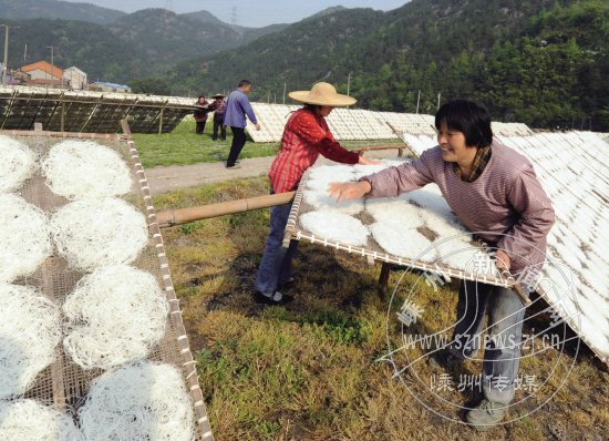 天晴的日子经过甘霖镇殿前村一带,在小乌溪江的江滩边,会看到晾晒着一排排榨面,白茫茫一片,场面颇为壮观。榨面是我市传统特产,有100多年历史。目前,仅殿前村就有榨面生产大户40多户。