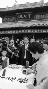 “天溪会”是日本著名的民间书法团体,创立于1970年,每隔5年,南鹤溪都会领着一些会员来中国参加拜谒书圣活动,这成为“天溪会”的传统。她说:“就像你们会去祭拜自己的亲人,我们也希望亲自来书圣墓前参拜。”