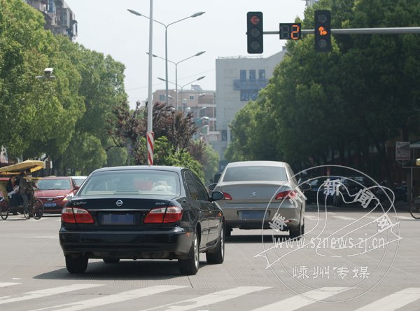 自昨日上午10时起约一个小时时间内,记者在市区官河路与官河横路交叉口、城中路与官河路交叉口、嵊州大道与江滨东路交叉口等多个路口拍摄,虽然不是上下班高峰期,几个路口的车流量也不是很大,但当绿灯转换为黄灯的一瞬间,仍有不少途经路口的机动车突然加速,抢着时间“冲”过路口。